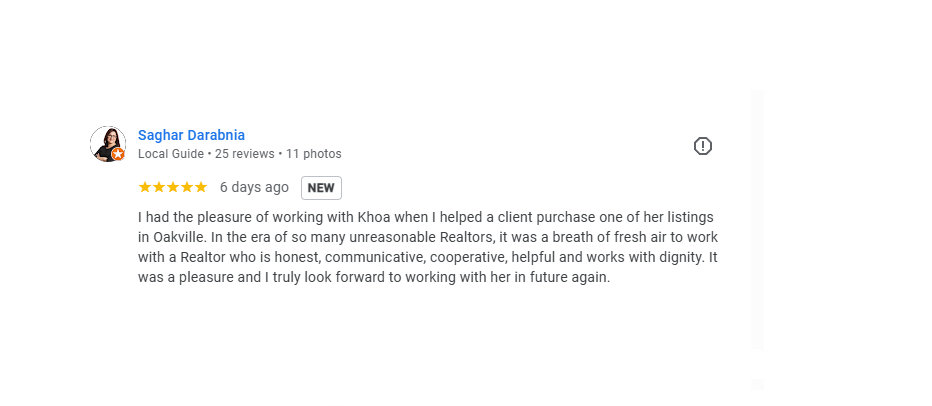 Saghar’s review, reflecting on a recent sale involving one of Khoa’s listings in Oakville, perfectly encapsulates this professional distinction: