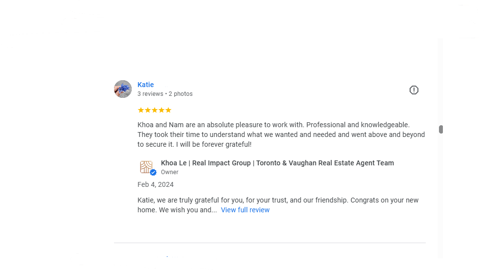 Khoa Le, a trusted North York Real Estate Agent and Real Estate Investment Advisor, is incredibly proud to share another glowing testament to the results-driven service provided by their team. This five-star Google review from their wonderful client, Katie, perfectly encapsulates the level of commitment Khoa and Nam bring to every transaction in the GTA housing market.