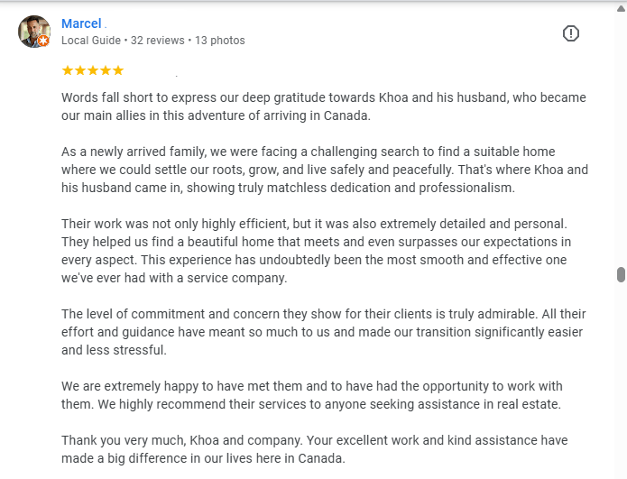 This testimonial underscores the key difference that a specialized North York Real Estate Agent like Khoa Le can make for a family starting fresh in the Greater Toronto Area (GTA).
