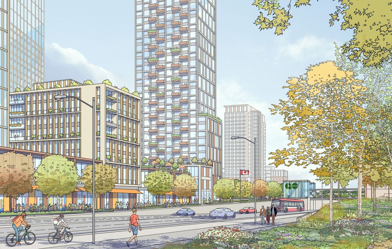 Looking south to Milliken Transit Oriented Community, designed by BDP Quadrangle for Remington Group and Infrastructure Ontario